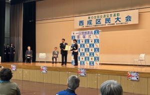 当日は、西成区長 稲峰様のご挨拶から始まり、地域の安全で安心なまちづくりに向けた想いが共有されました。